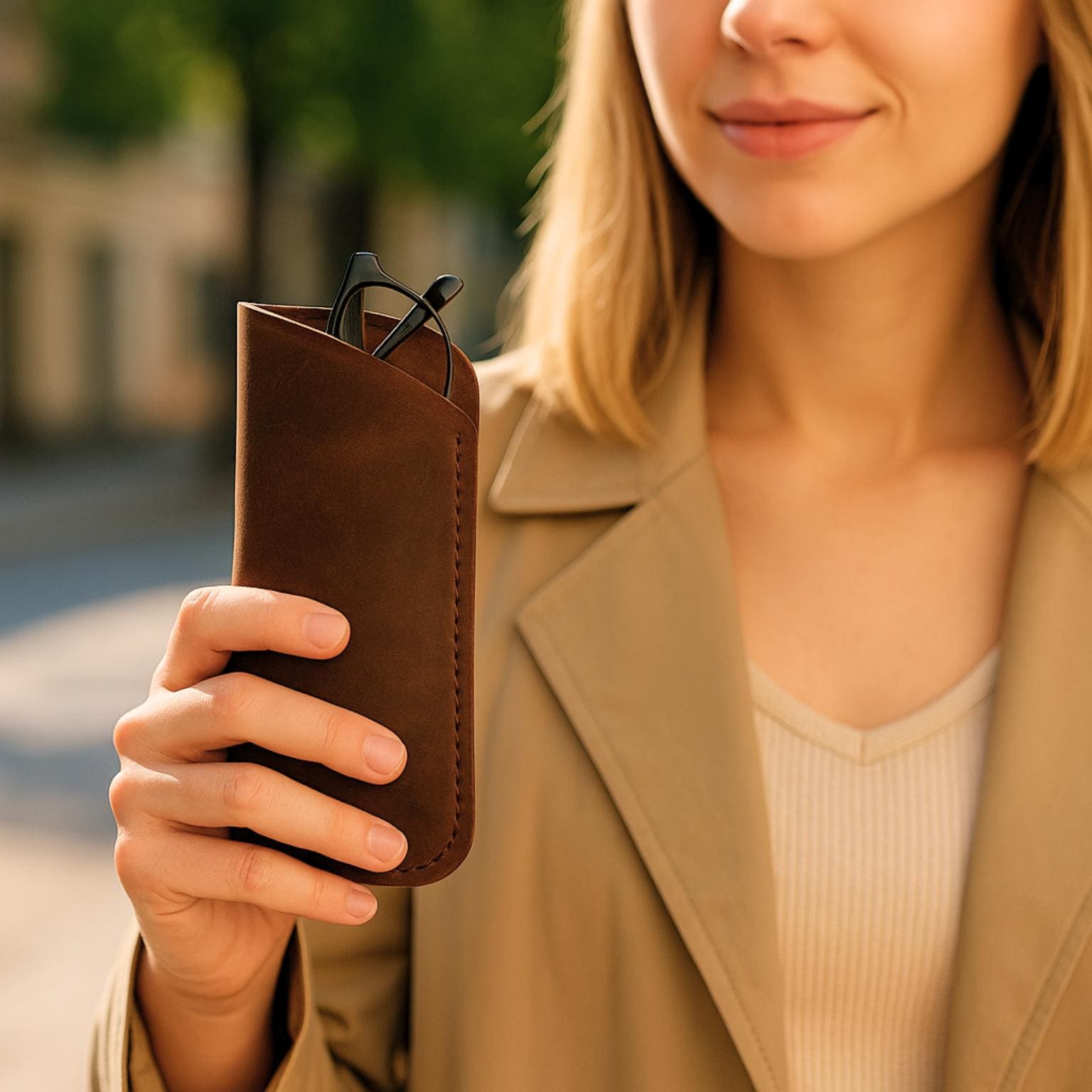 Our handcrafted, 100% leather minimalist glasses case combines elegance with durability, making it a perfect choice for anyone who values quality. Designed with premium natural leather, it ensures long-lasting protection for your glasses while preventing scratches and impacts. Its lightweight and minimalist design make it an easy-to-carry sunglasses case or glasses case for everyday use.