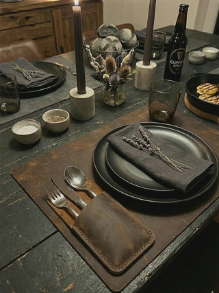 Handgefertigte Bestecktasche aus Leder