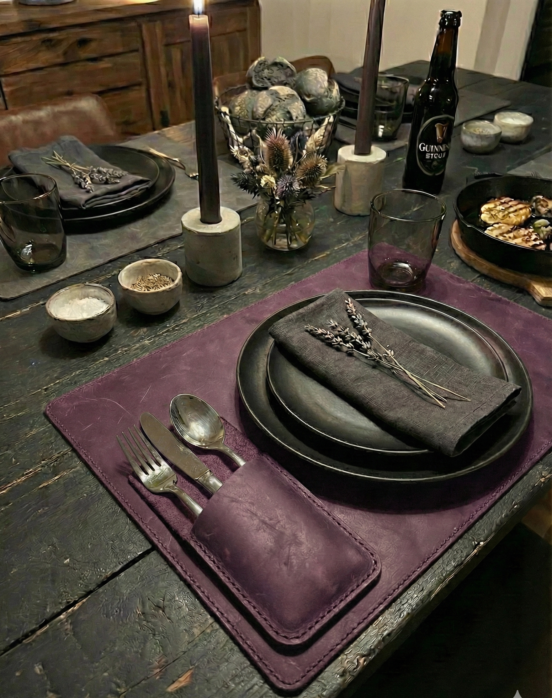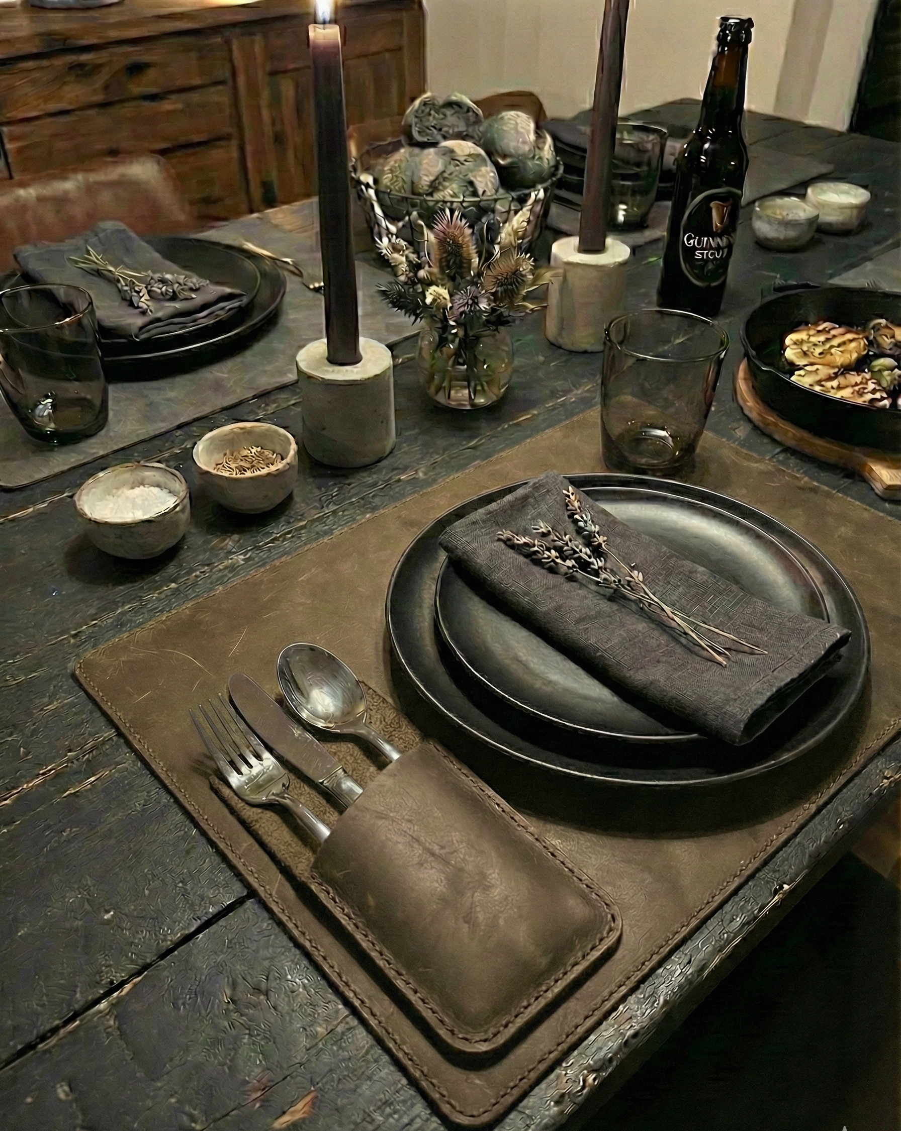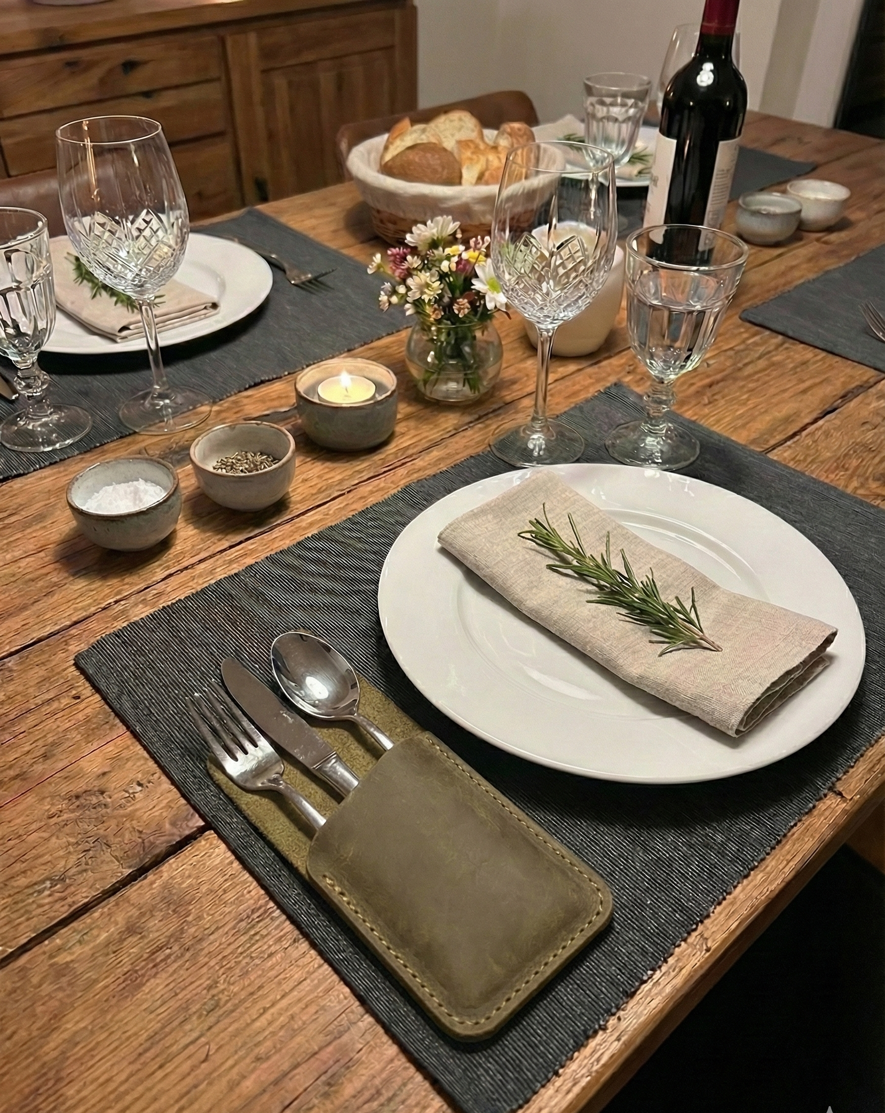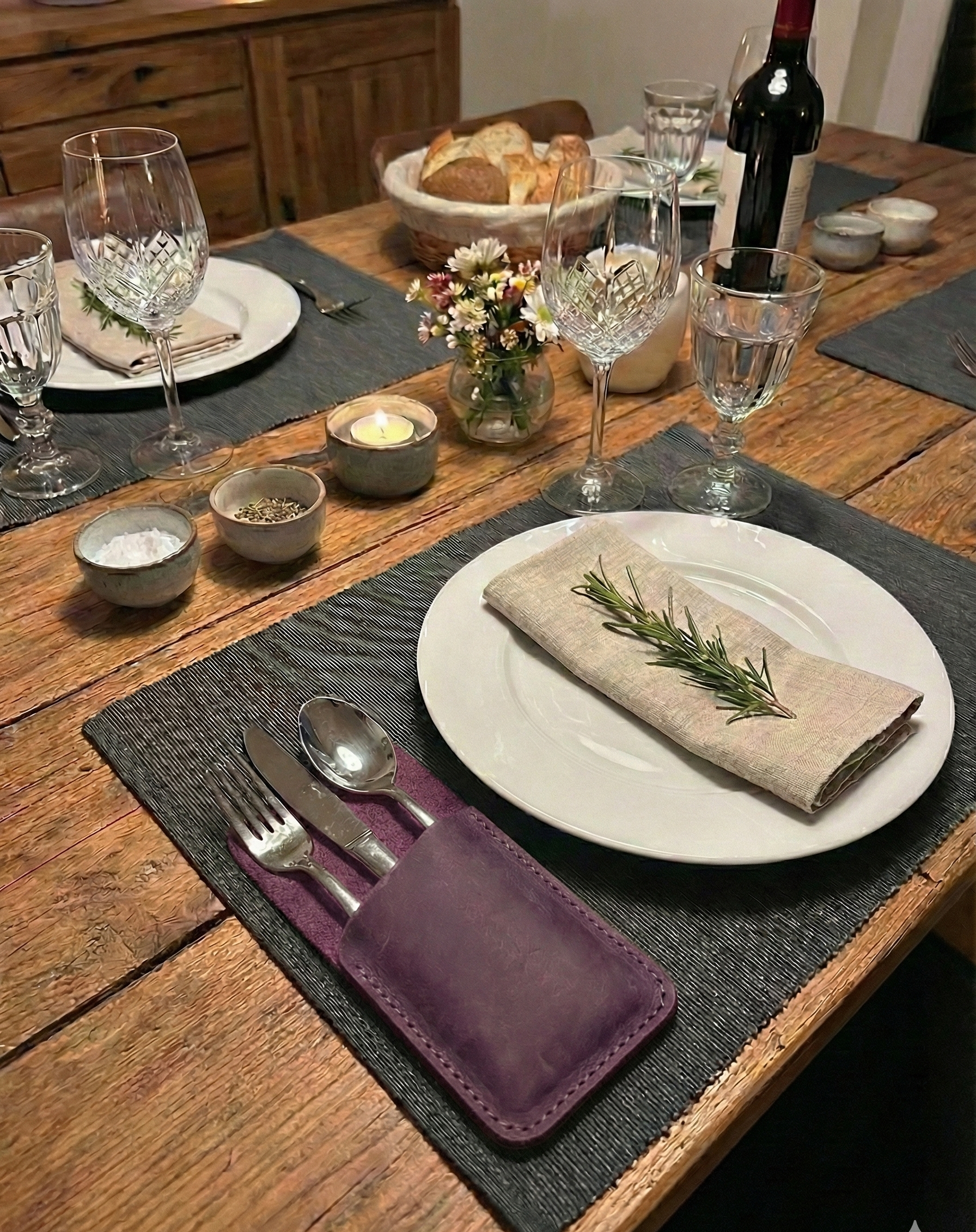 Verleihen Sie Ihrer Tischdekoration Eleganz! Dieses personalisierte Bestecketui aus 100 % echtem Leder wird in Handarbeit gefertigt und vereint Stil und Langlebigkeit perfekt. Ideal als Einzugsgeschenk oder für die Präsentation in gehobenen Restaurants.